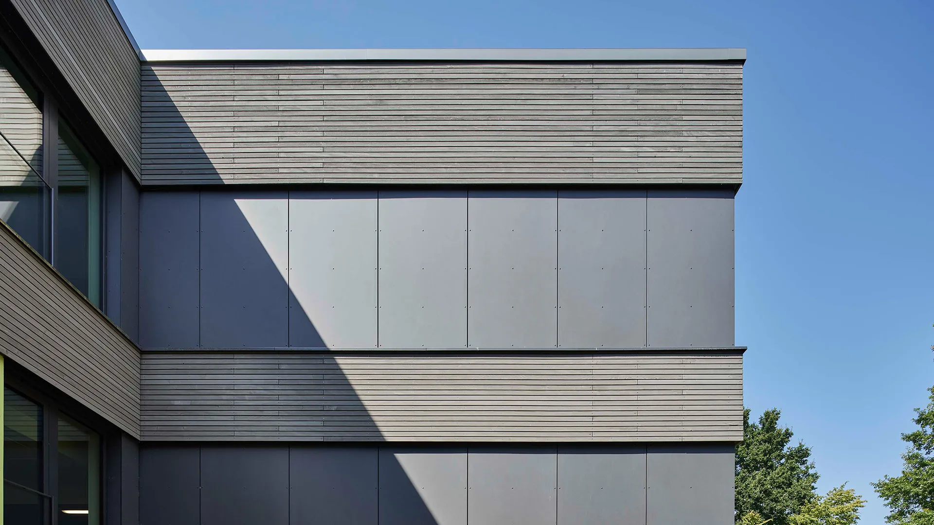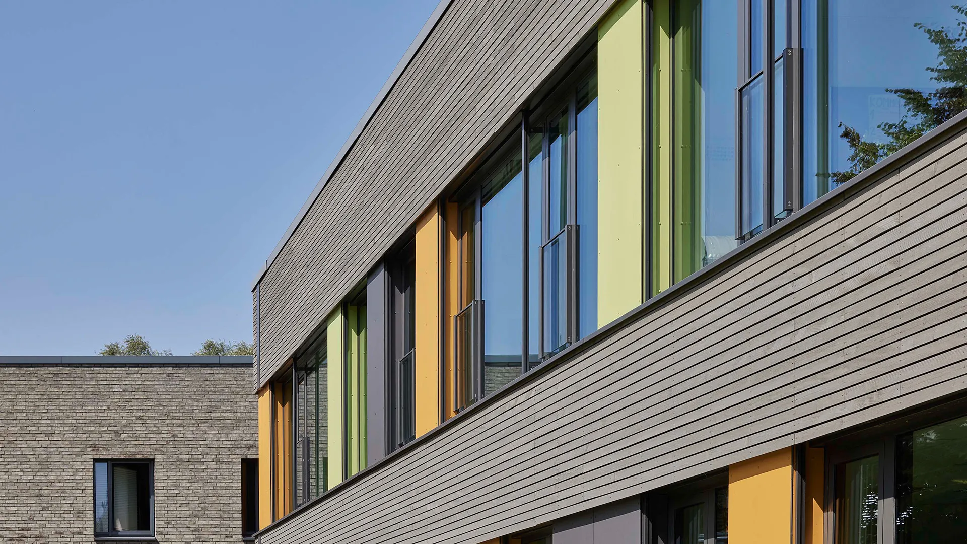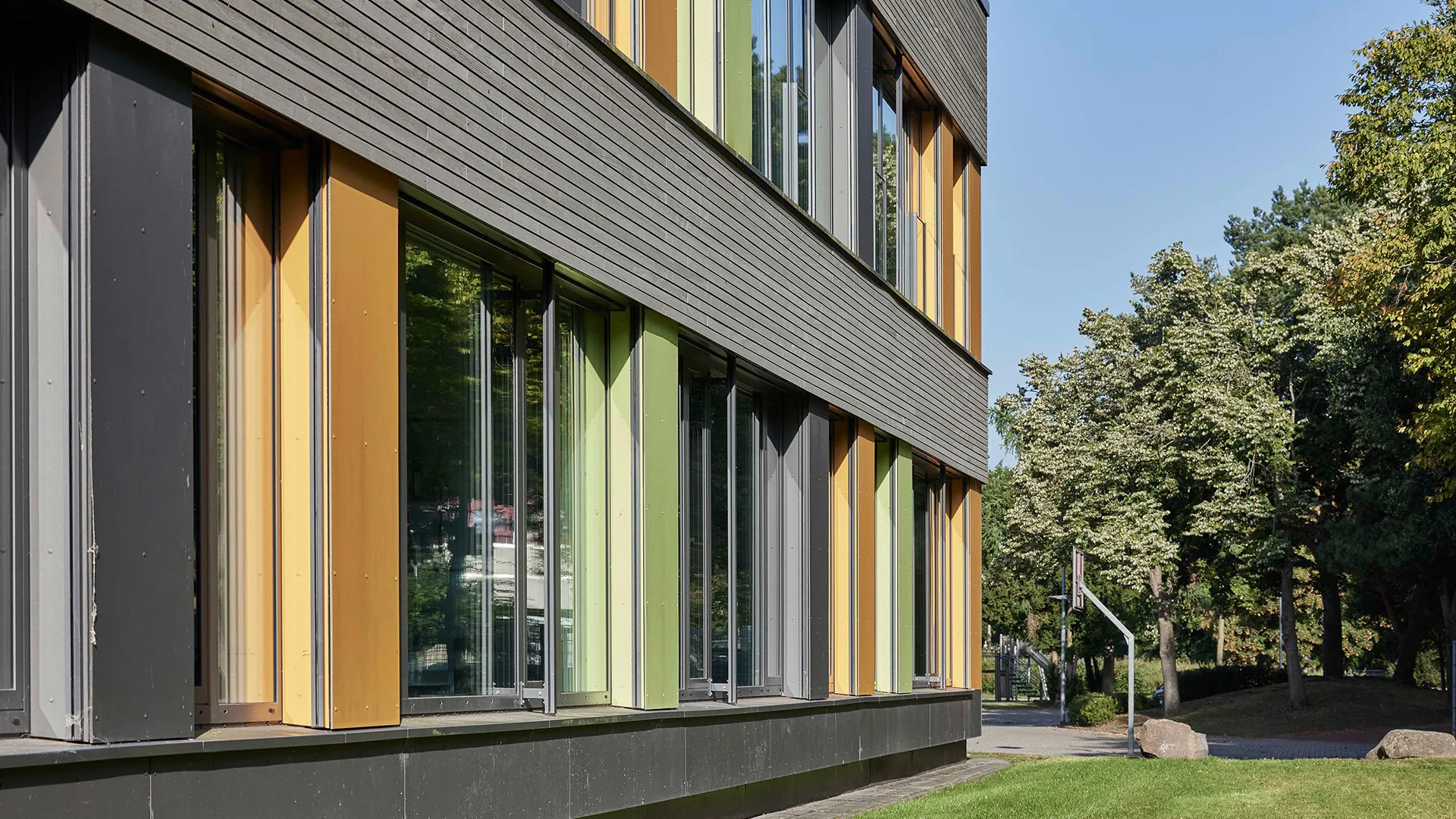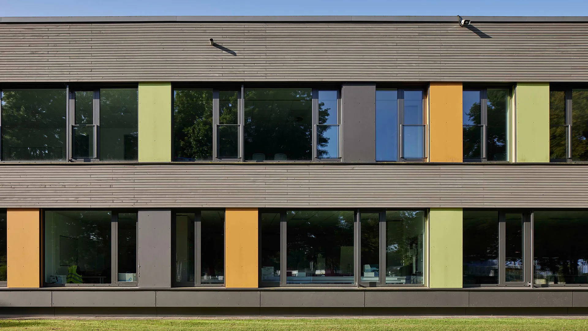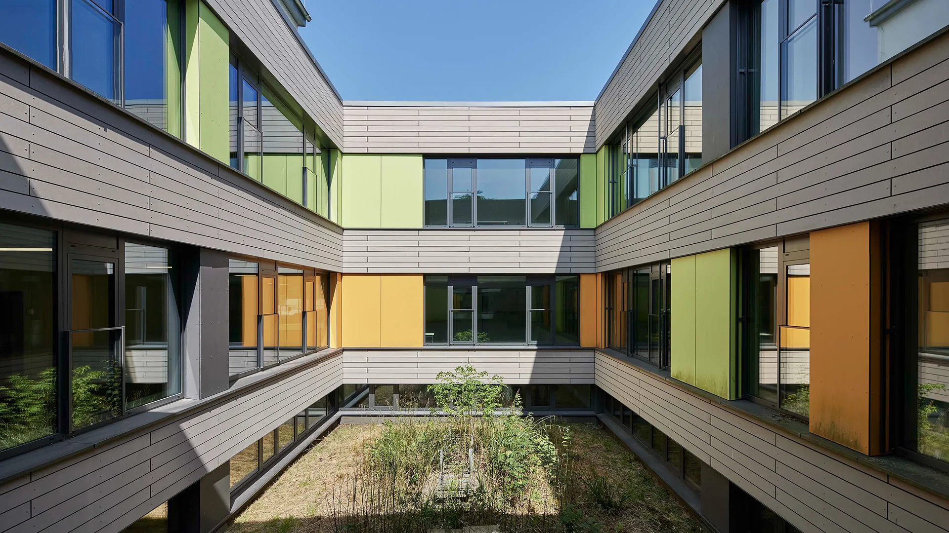 Der hohe Vorfertigungsgrad ermöglichte eine besonders kurze Bauzeit während der Sommerferien, sodass der Schulbetrieb nicht beeinträchtigt wurde. Gleichzeitig wurden Dach und Fassade energetisch auf den neuesten Stand gebracht: Der rechnerische Wärmeverlust konnte um mehr als die Hälfte reduziert werden.
