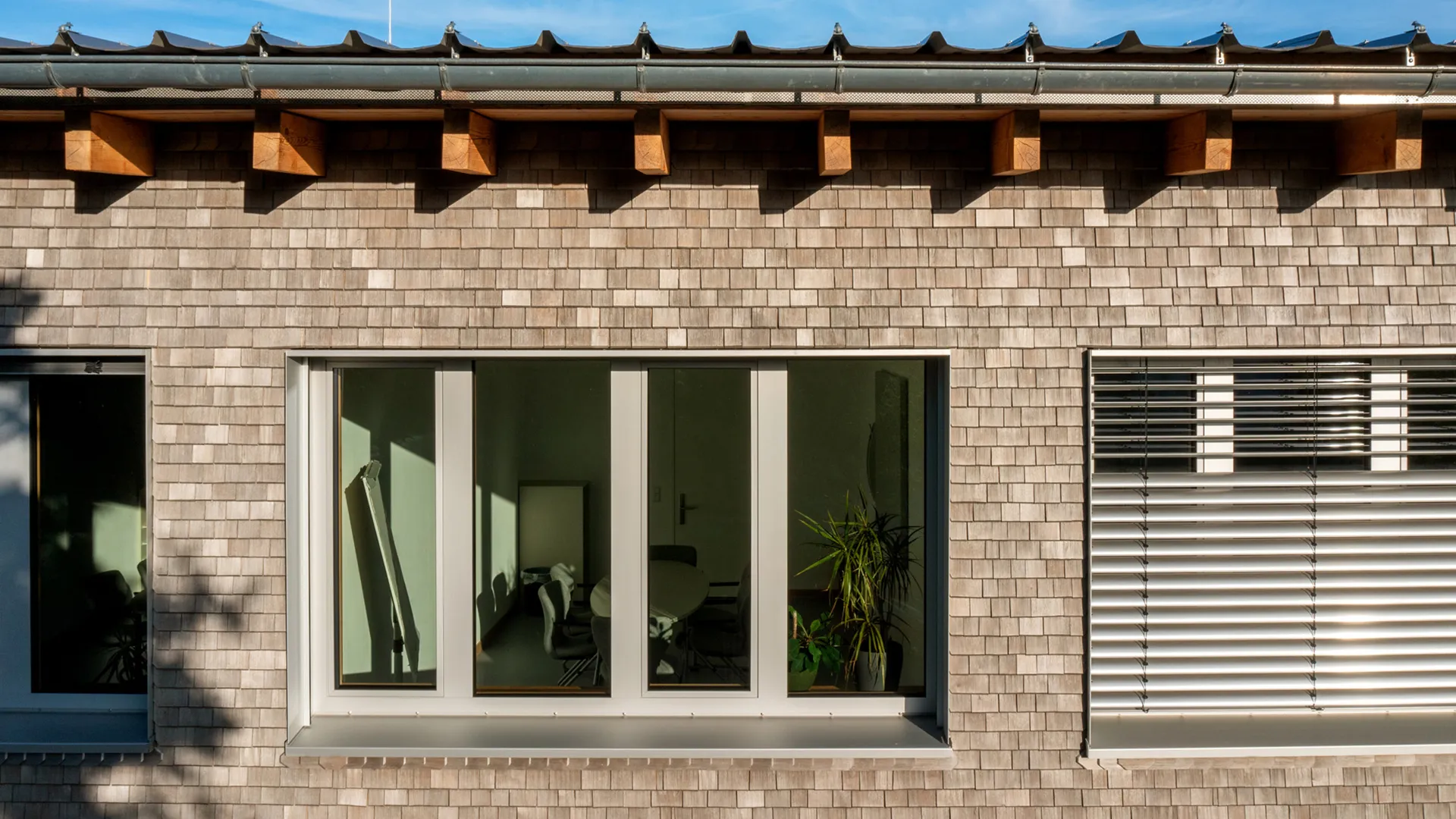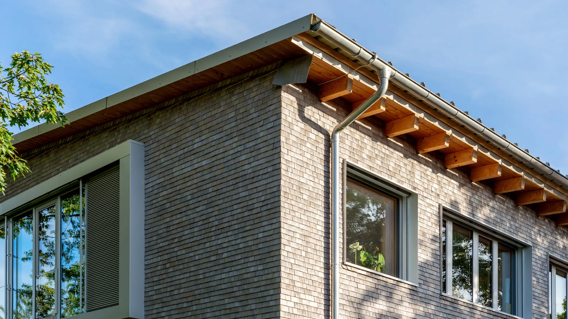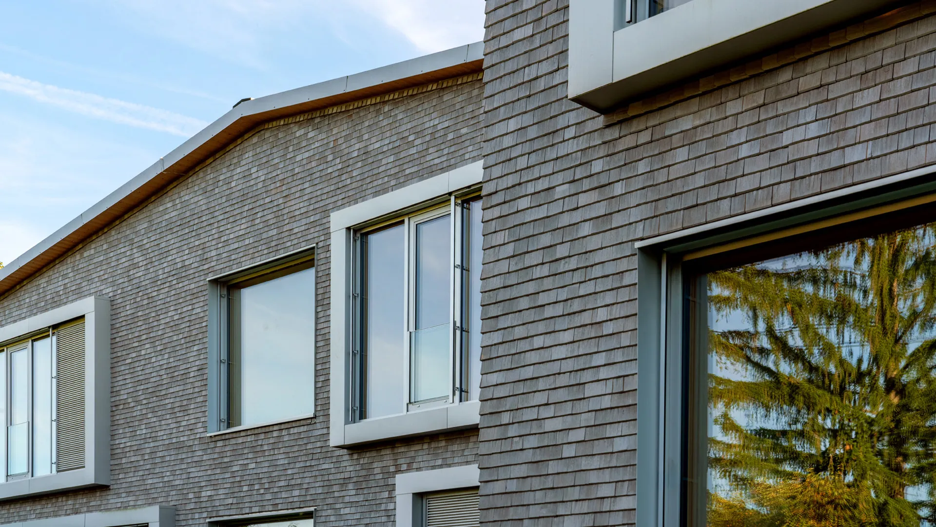 Für die Fassade haben wir Holzschindeln aus dem Schwarzwald verbaut. Das Fassadenbild erhält so einen lebendigen Charakter aus einem nachhaltigen und langlebigen Material.