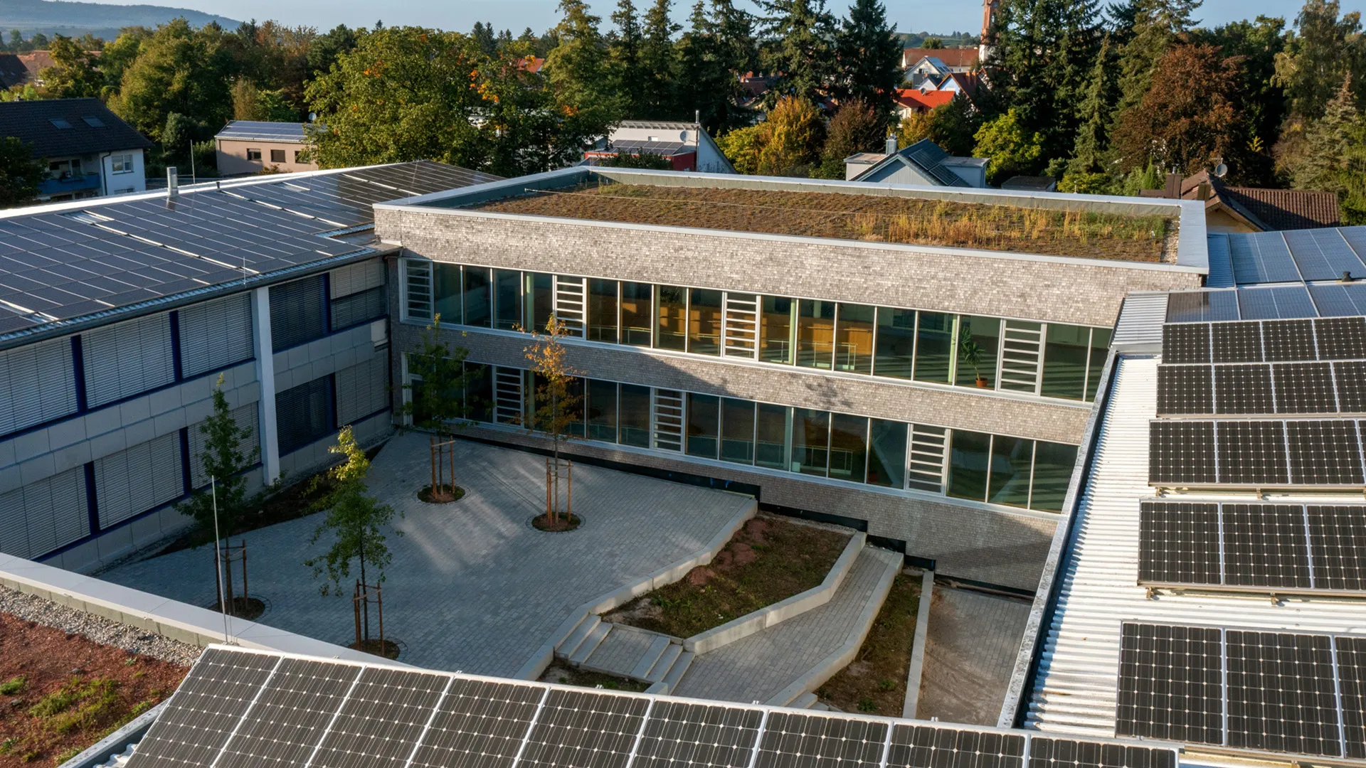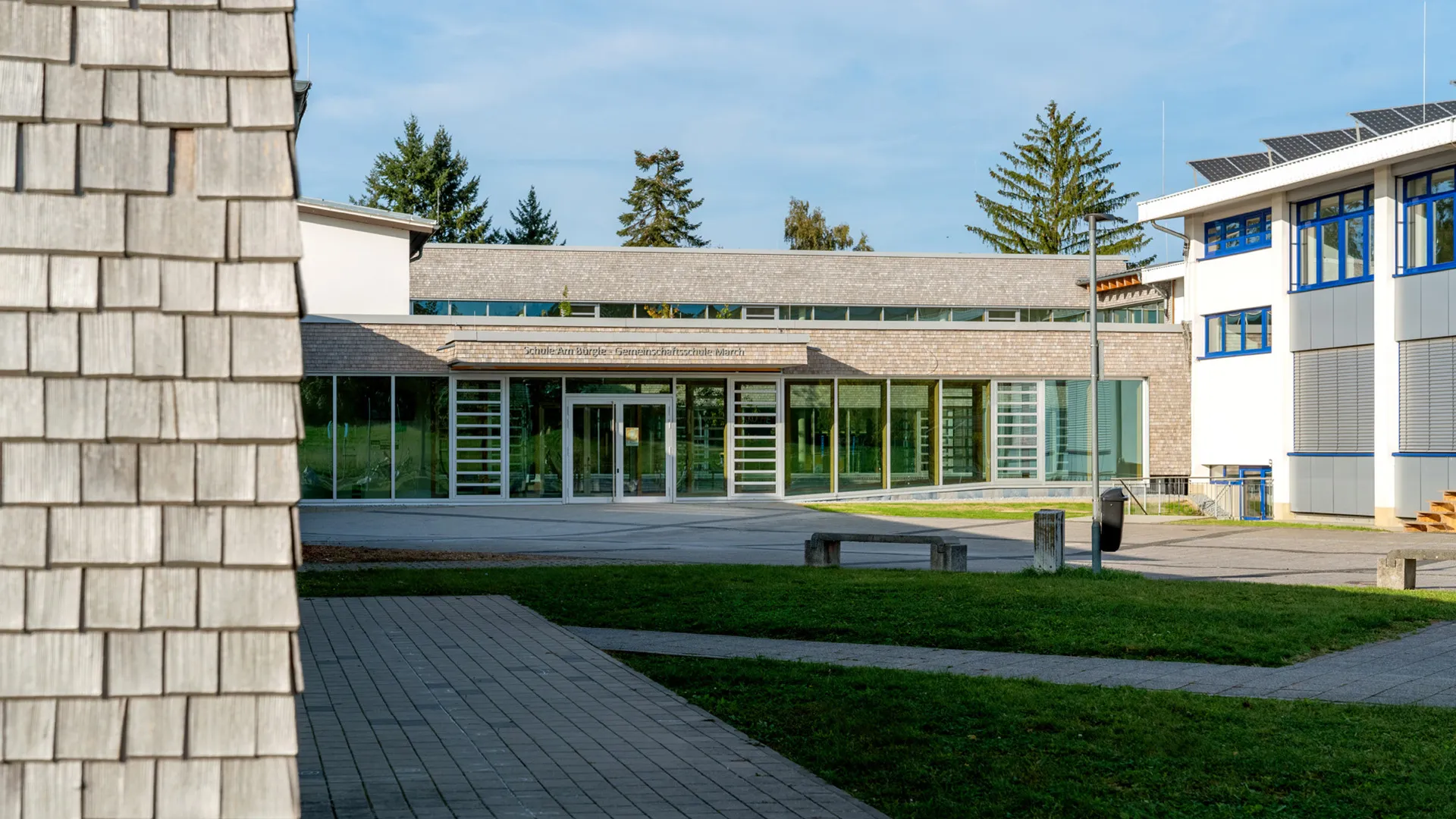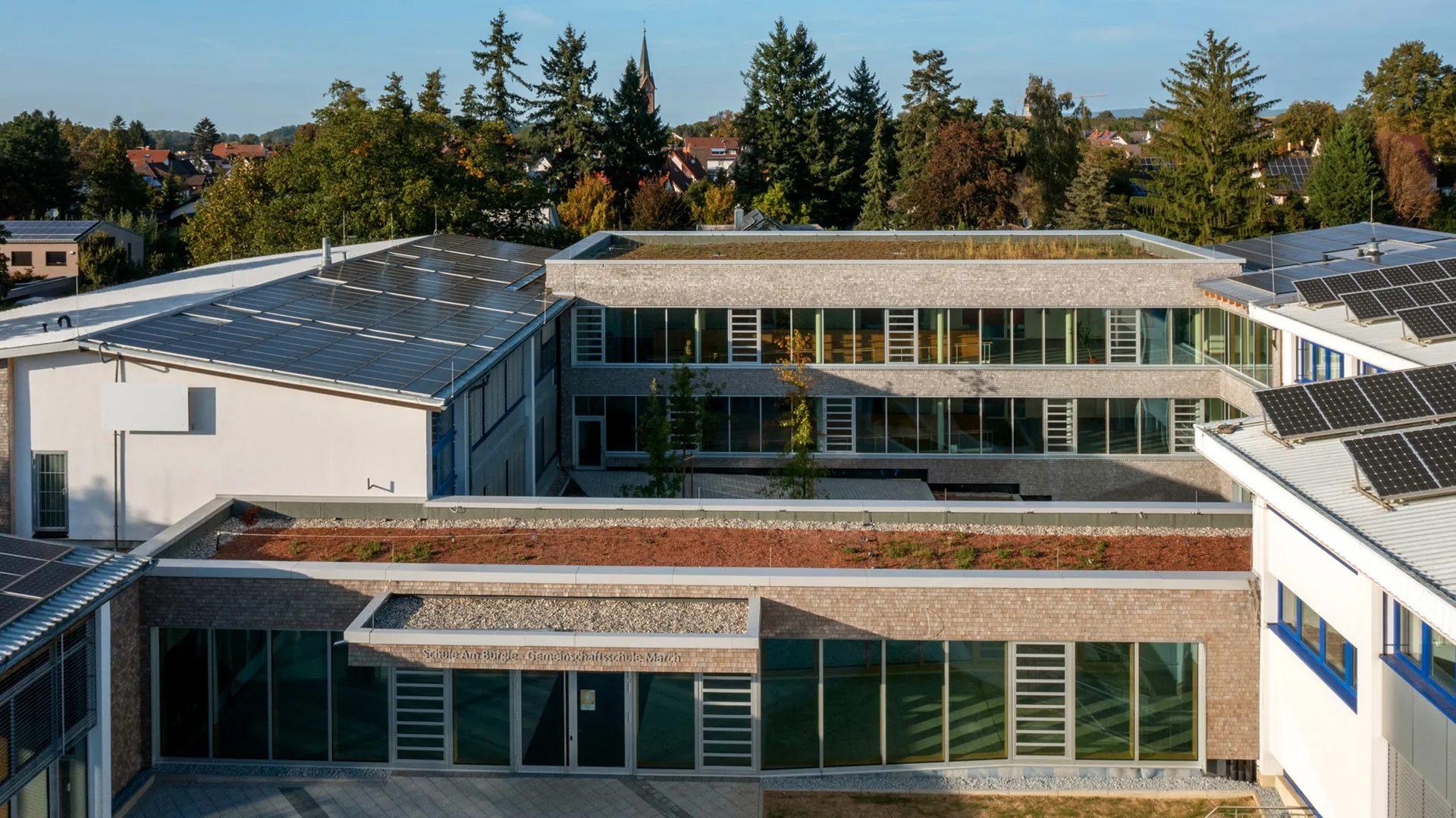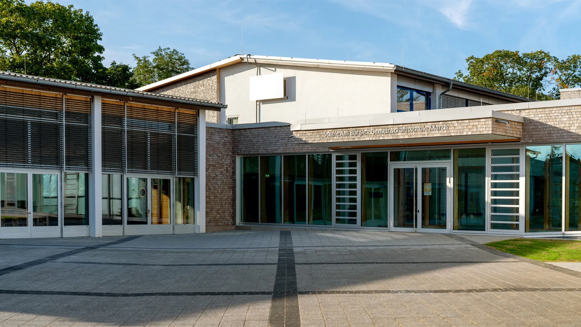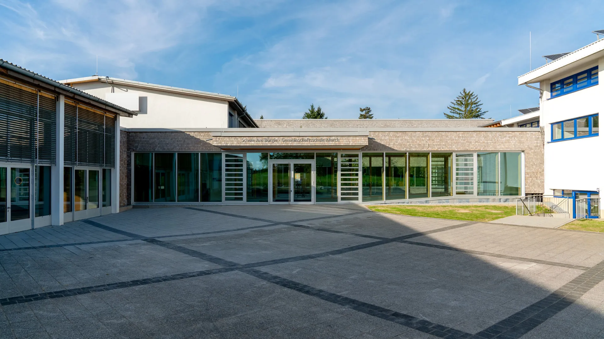 Die Gemeinschaftsschule in March bietet rund 200 Schülerinnen und Schülern Lern- und Lebensraum. Um den steigenden Bedarf an modernen Unterrichtsräumen zu decken, wurde das bestehende Gebäudeensemble um drei Neubauten ergänzt und gleichzeitig umfassend saniert. So entstand ein zeitgemäßer Campus, der Lernen, Begegnung und Aufenthalt gleichermaßen fördert.