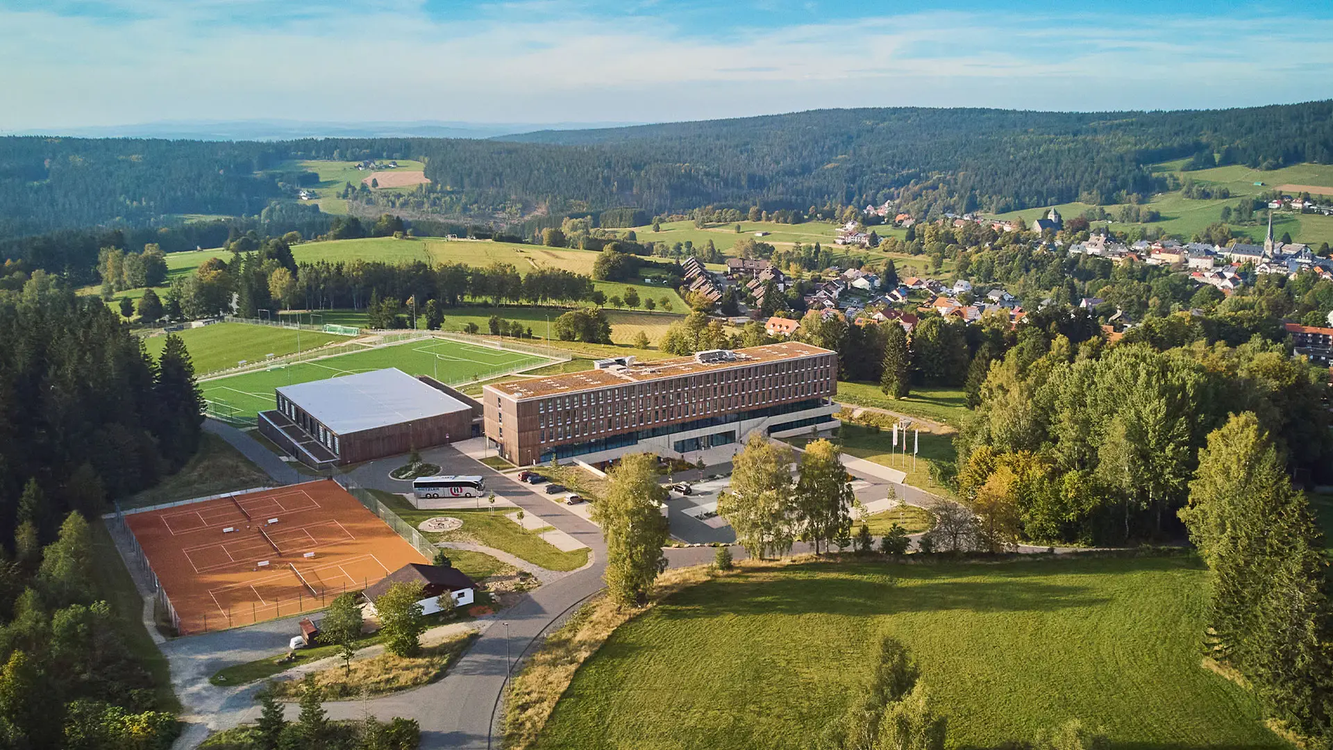 Am Fuße des Ochsenkopfes im Fichtelgebirge betreibt der Bayerische Landessportverband e.V. (BLSV) das neue Sportcamp Nordbayern. Auf insgesamt 55.000 m² bietet es zahlreiche Sport- und Erholungsangebote. Herzstück des Areals ist der fünfgeschossige Neubau, um den sich die Freiflächen fächerartig am Hanggrundstück verteilen.