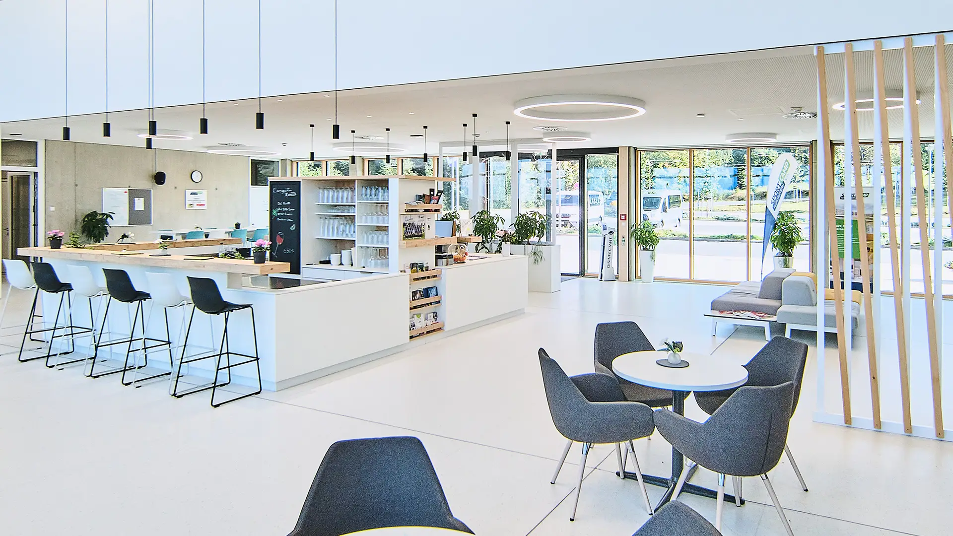 Holz, Naturstein, Lehm, Zink und Glas prägen das äußere Erscheinungsbild des Gebäudes und schaffen eine natürliche, harmonische Atmosphäre.